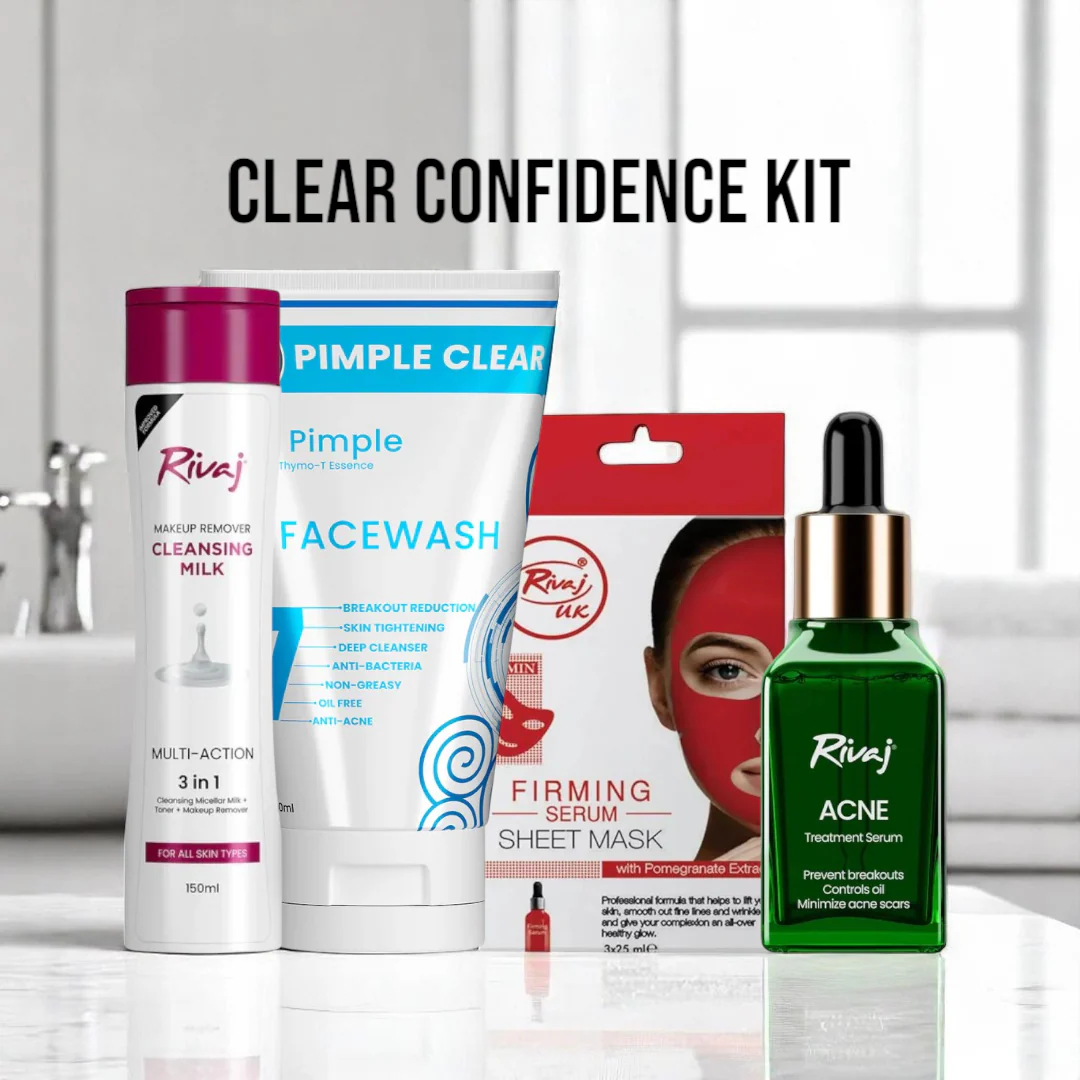 Take charge of your skincare with the Clear Confidence Kit—your complete solution for clearer, balanced, and healthier-looking skin. Formulated to tackle acne, deeply cleanse, and support your skin’s natural recovery, this routine helps restore clarity and calm for a fresh, confident glow every day.
